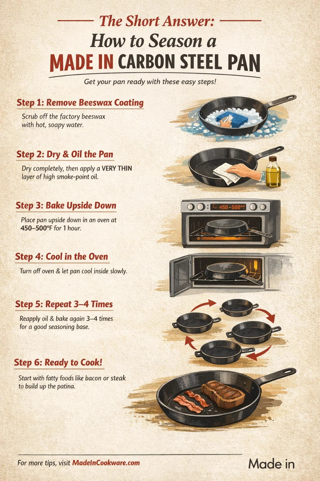 그 과정이 겁이 난다면, 멈추십시오. 복잡하지 않습니다. 대부분 열 사이클이 완료될 때까지 기다리는 인내심이 필요하지만 단계 자체는 간단합니다. 이 가이드에서는 공장 코팅 제거, 기름 선택, 오븐 대 쿡탑 방법, 먼저 요리할 항목, 시간이 지나도 양념을 유지하는 방법, 문제가 있는 경우 해결 방법 등 모든 것을 다룹니다.