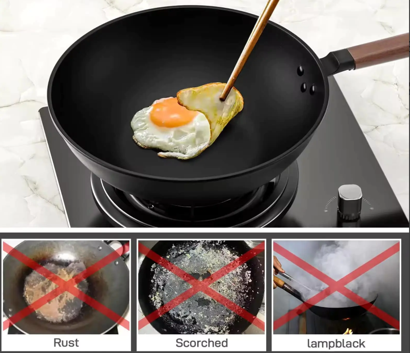 전통적인 철 팬 : 표면이 거칠고 그리스는 기공을 채우기 위해 기공을 채워야하므로 더 많은 오일이 필요합니다.