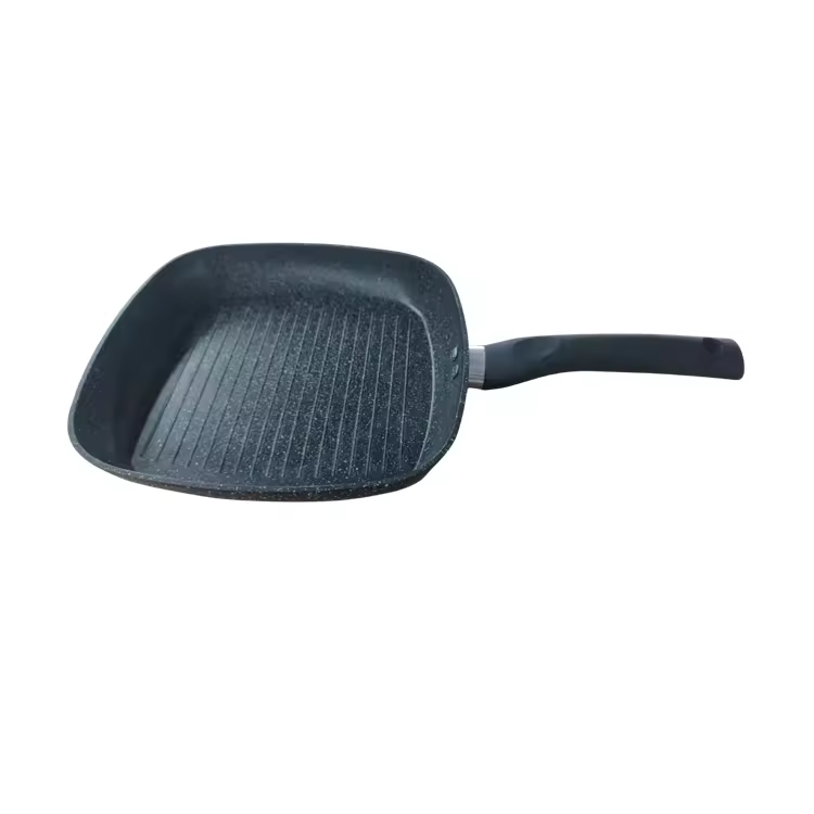 붙지 않는 주조 알루미늄 그릴 팬 사각 소프트 터치 스테이 쿨 핸들 PFOA 무함유 코팅 유도 호환 가능